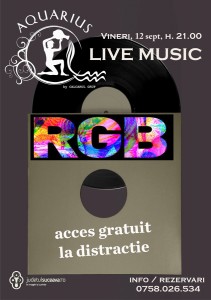 Vineri, 12 Septembrie 2014, începând cu ora 21:00, Club Aquarius Câmpulung Moldovenesc te invită la un concert susținut de trupa RGB.